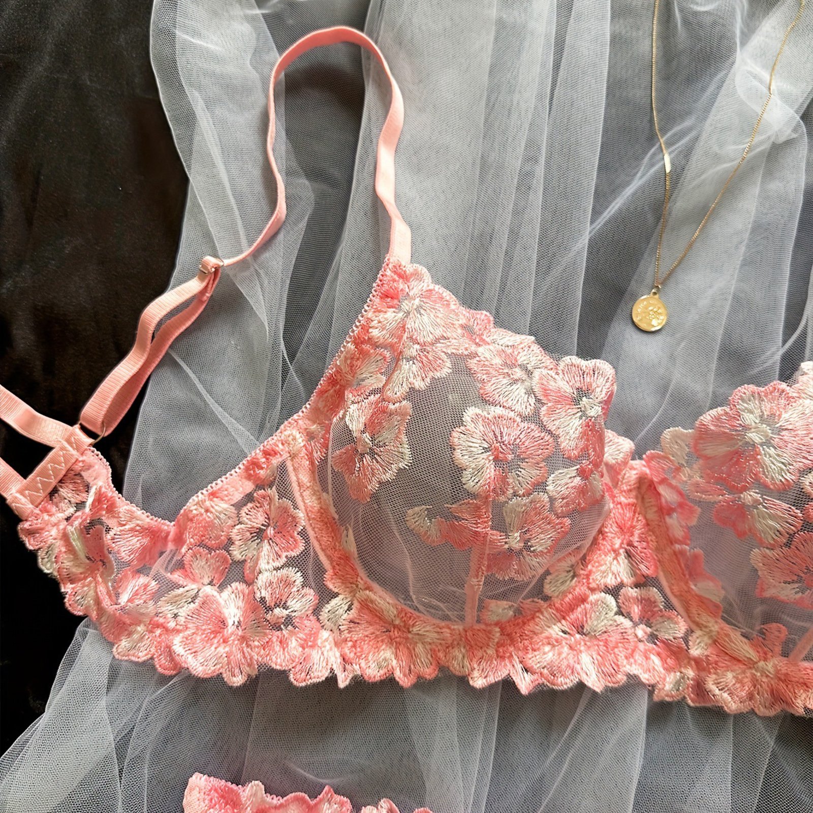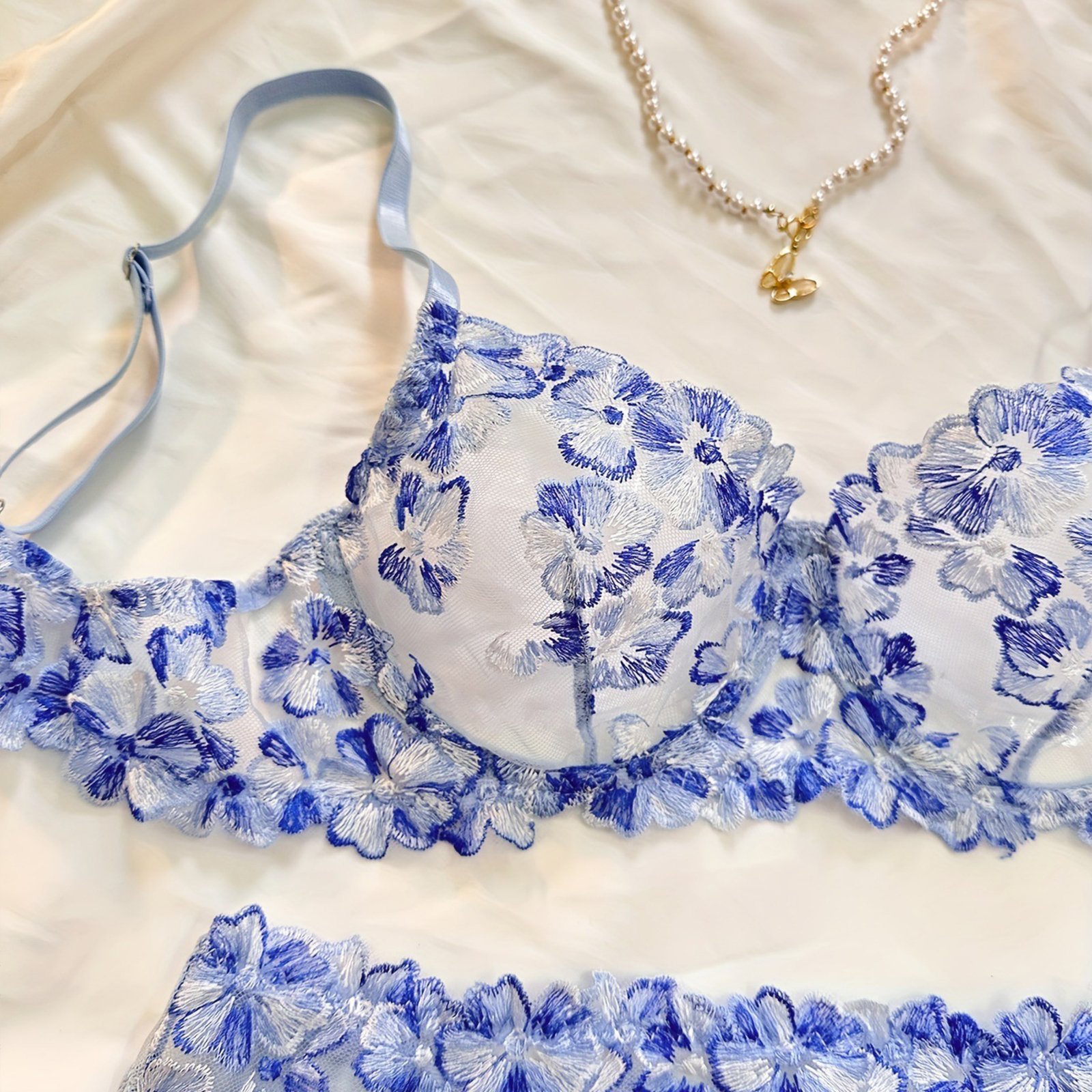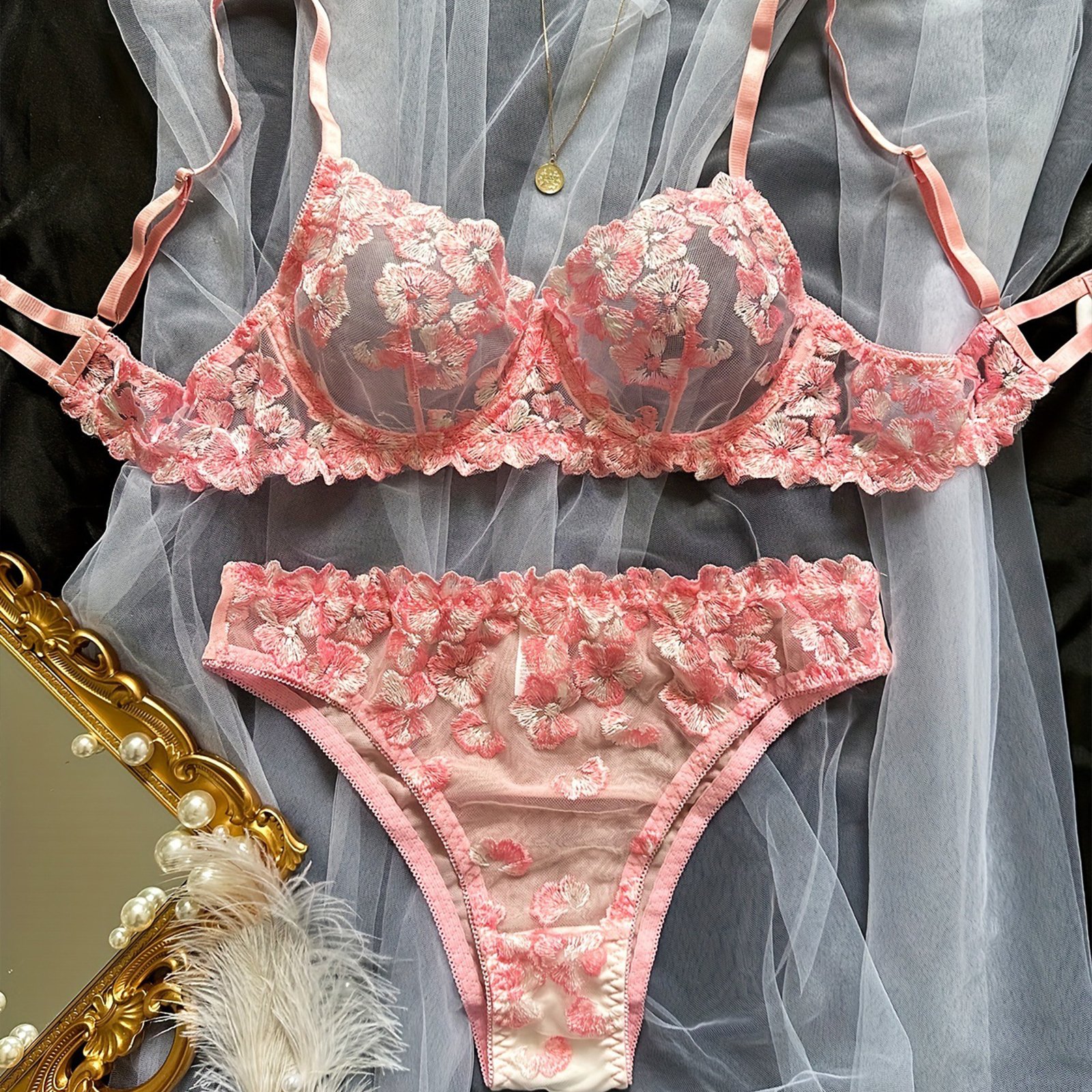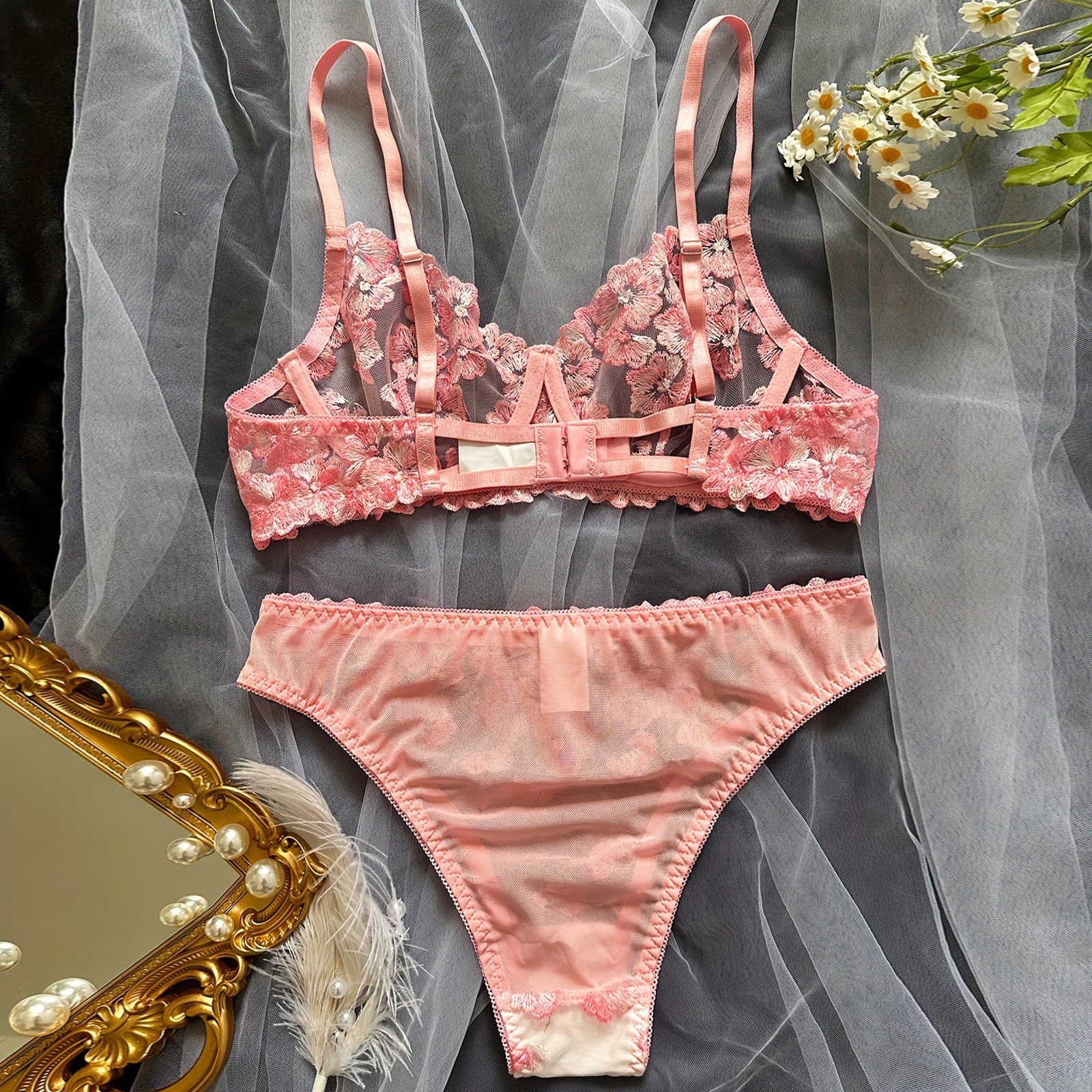 Floral Sexy Lingerie Underwear Transparent Luxury Embroidery Intimate Kits Sissy Sheer Outfit Sexy Bra and Panties Sets