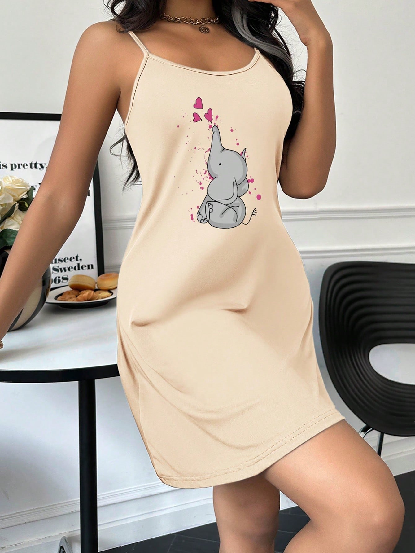 New Design Cute Lounge Wear Night Dresses for Woman Summer Sleepwear Soft Elephant Printed Lovely Nightgowns for Women