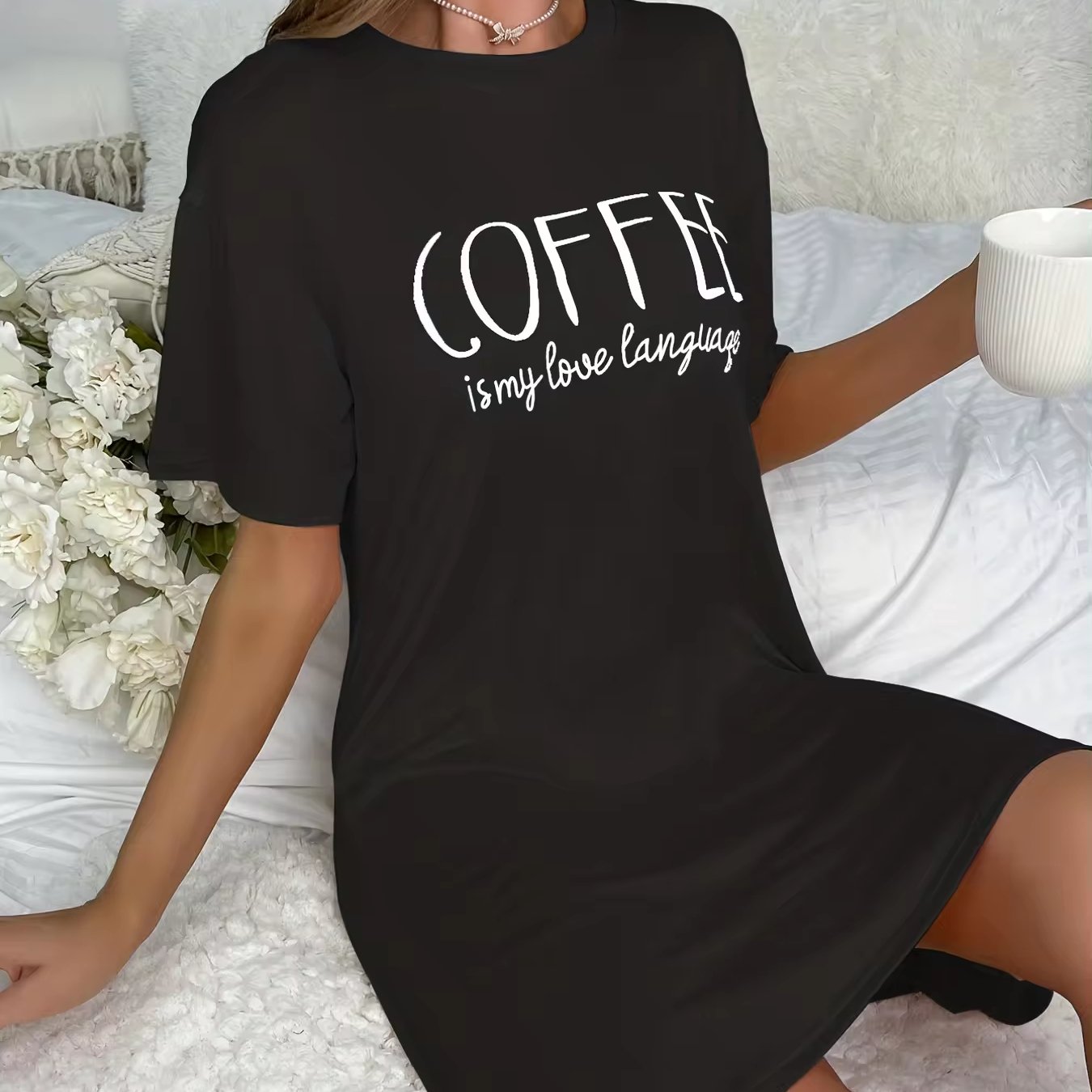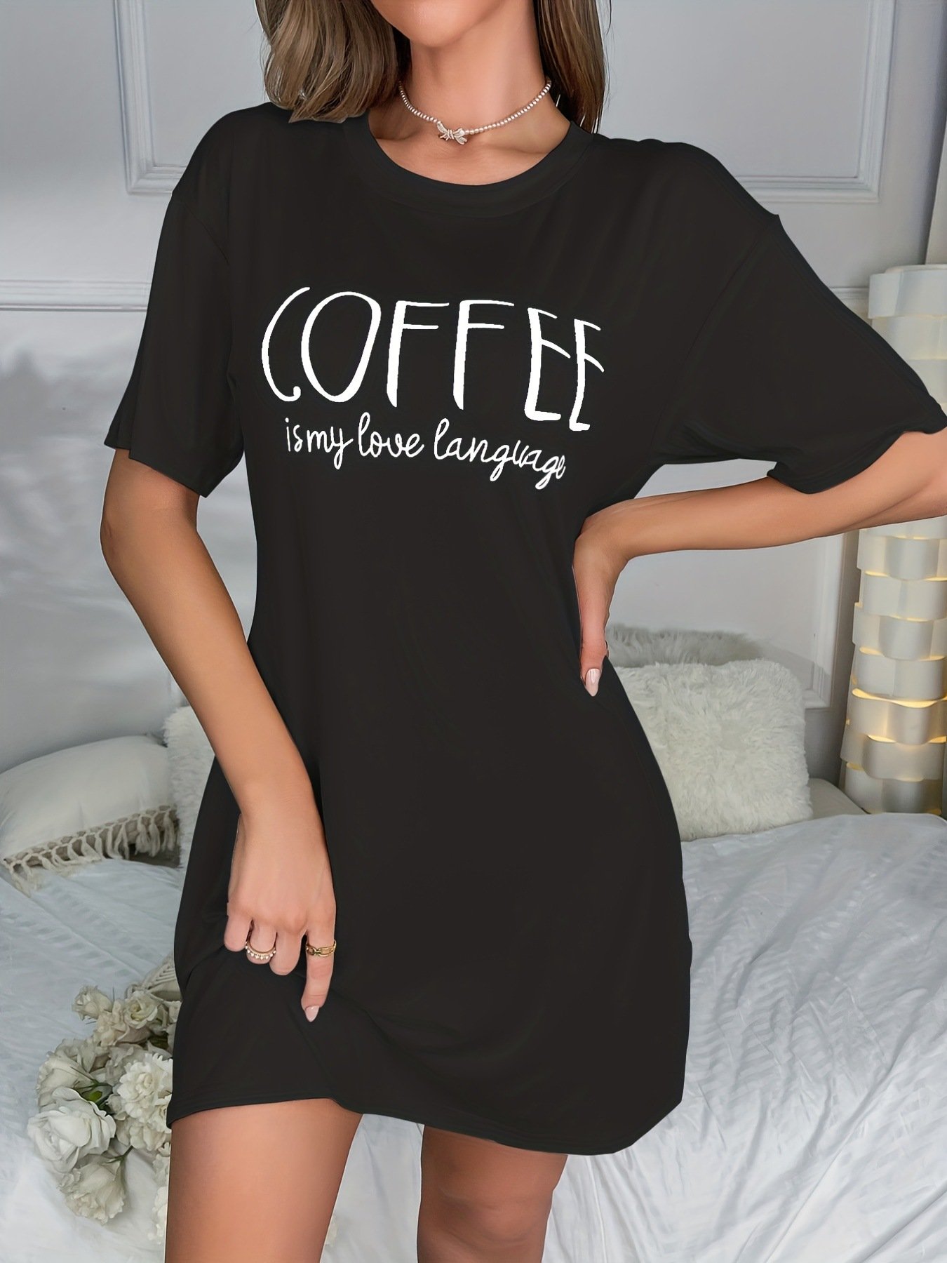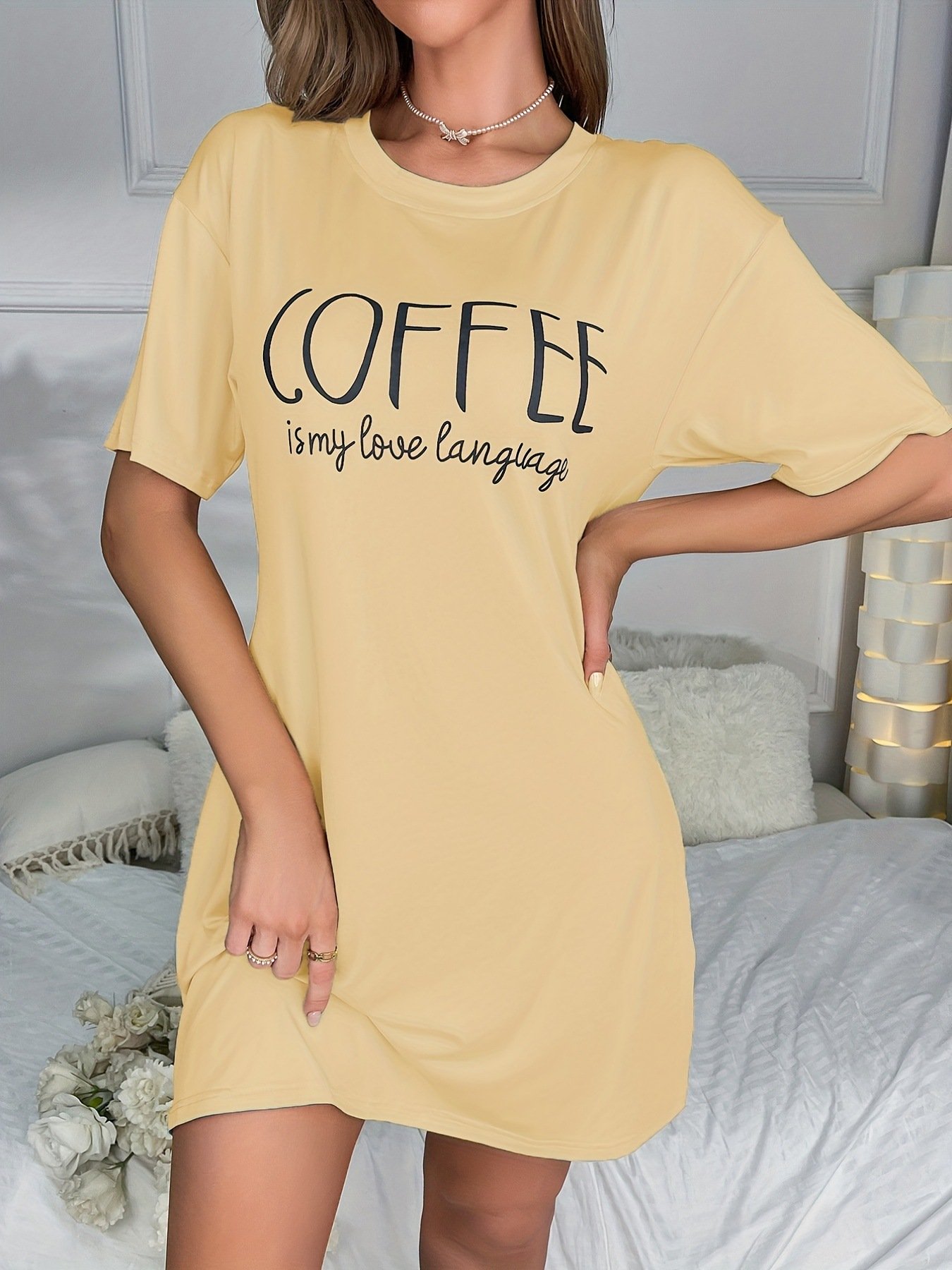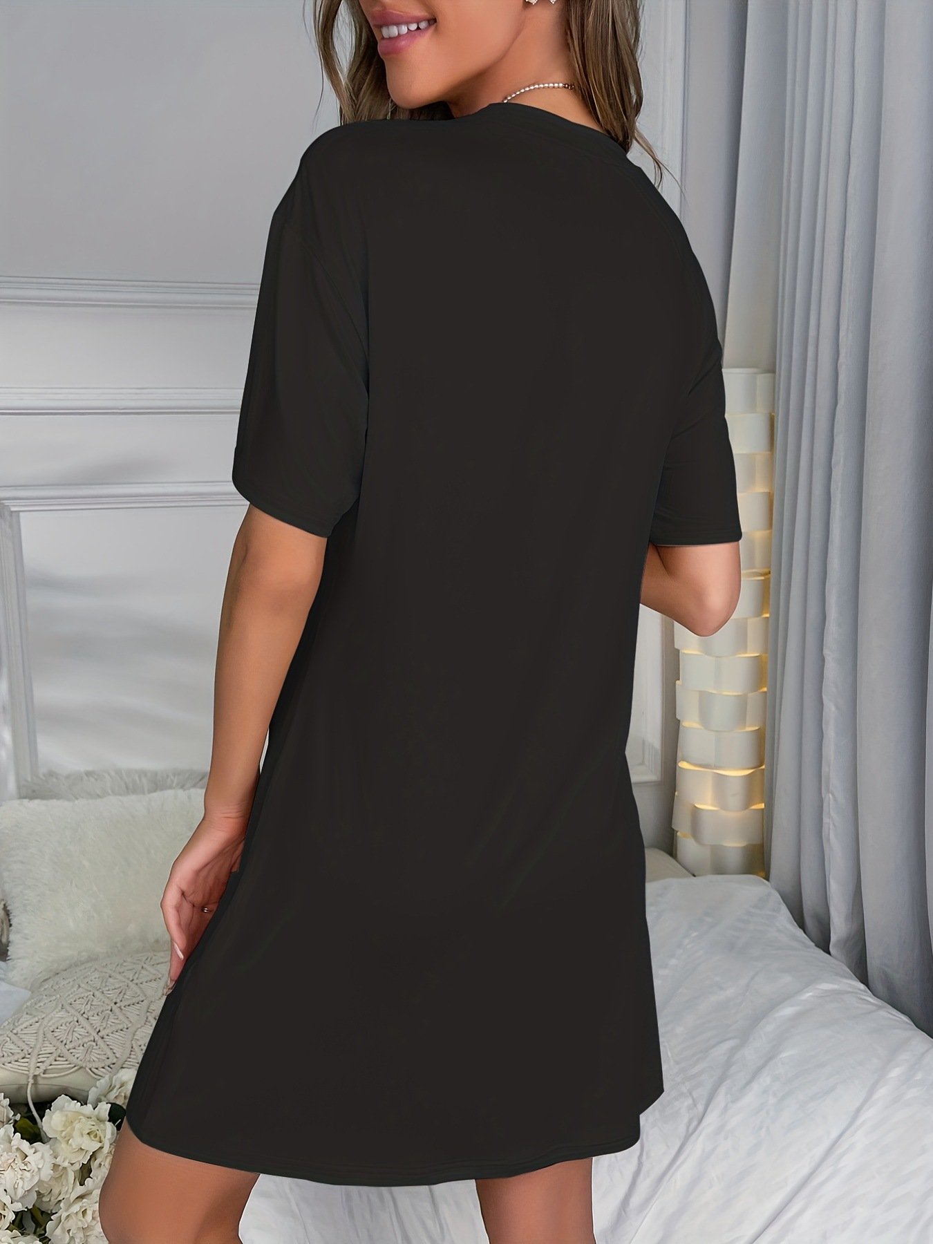 Nightgown Loose Fit Short-Sleeved Tshirt Gowns for Women Letter Print Home Wear Tshirt Women Home Night Dress Pajama Dress