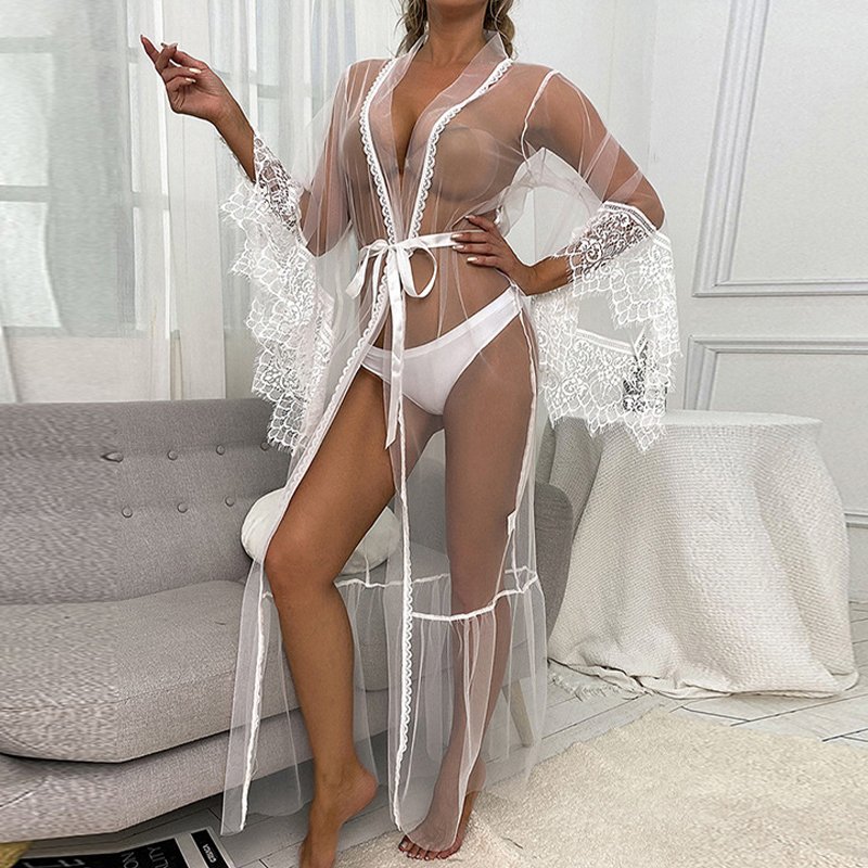See Through Mesh Erotic Fashion Lingerie Sexy Lace Transparent Romantic Nightgowns Robe