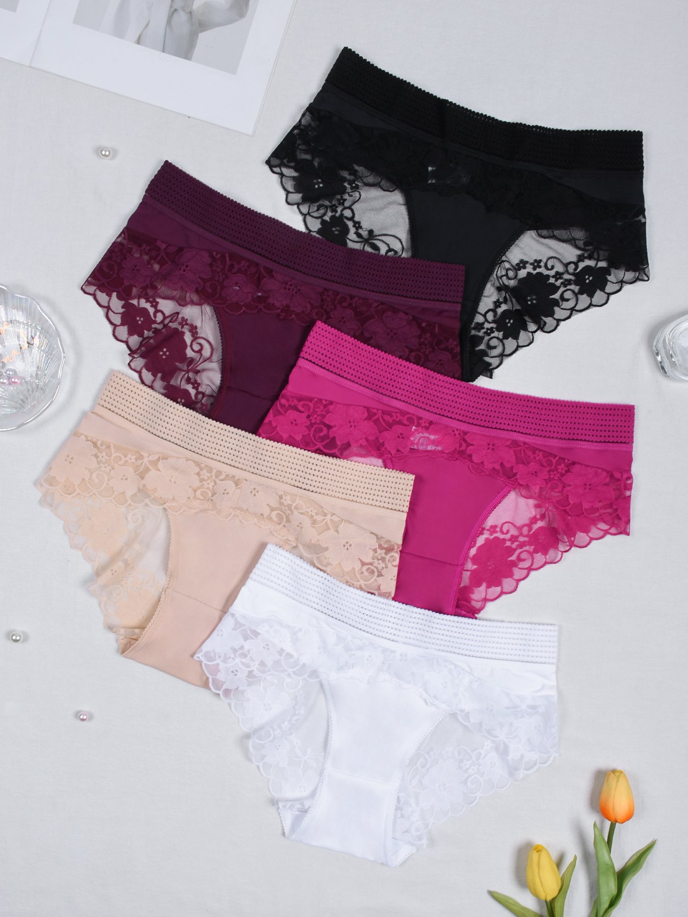 Sexy Ice Silky Lace Seamless Ladies Underwear Panties Soft Female Transparent Briefs Mid-Rise Woman See Through Lingerie