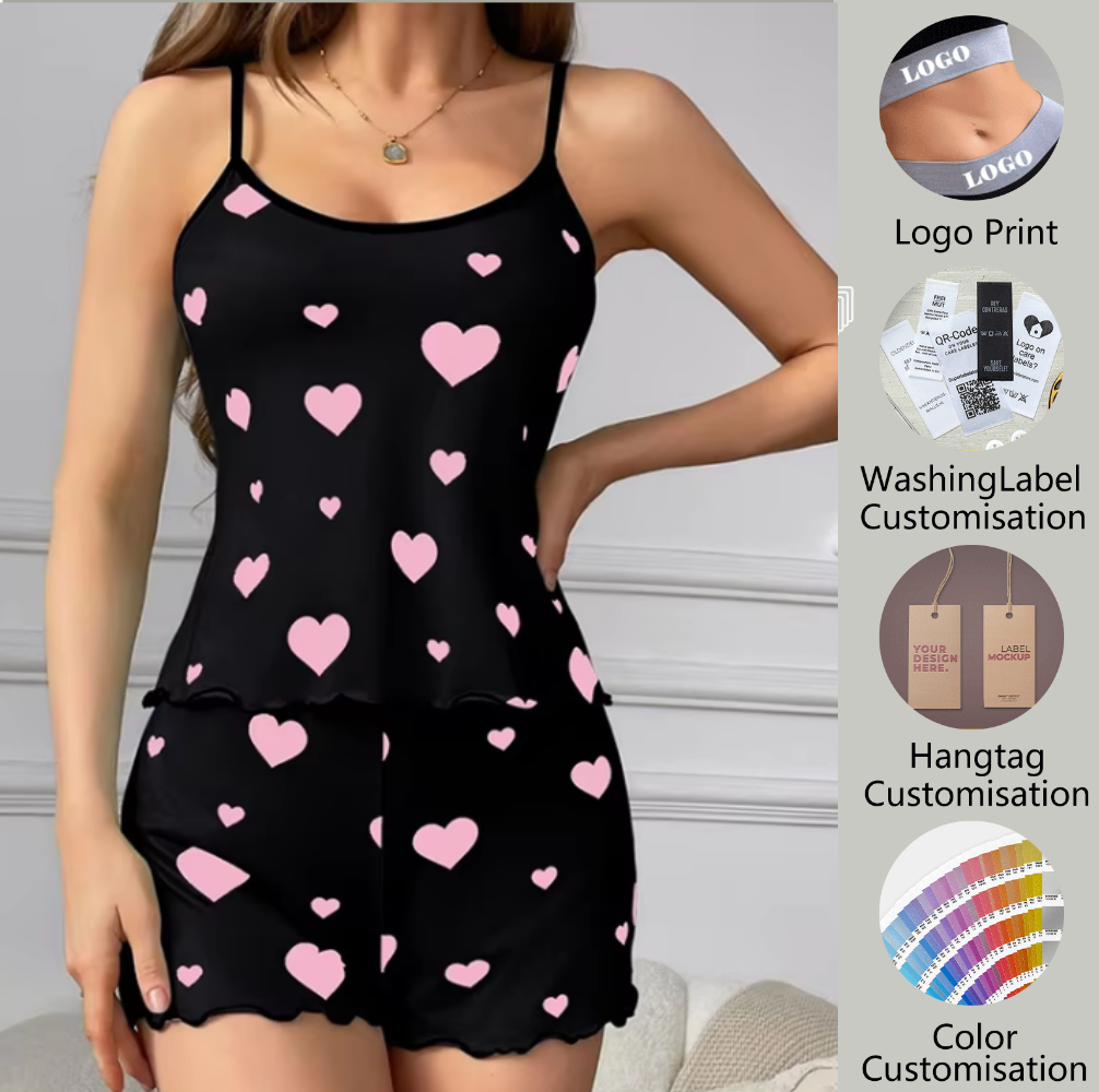 Women’s Sleepwear Ladies Tops Heart Print Sleeveless Night Wear Pajamas Ladies Valentine’s Day Cute Womens Summer Clothing